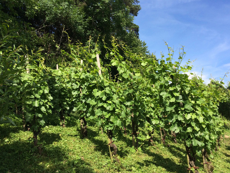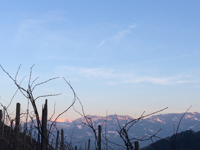 Durch den kleinen Rebberg meiner Grosseltern im St. Galler Rheintal bin ich schon früh mit Reben und allem was dazu gehört in Kontakt gekommen. Wenn ich an meine Grosseltern denke, sehe ich sofort die vielen Stunden vor meinem inneren Auge, die wir miteinander in den Reben verbracht haben und die vielen Gespräche, die regelmässig "von den Erwachsenen" geführt wurden zum Stand der Dinge im Rebberg. Meine Grosseltern liebten die Reben und diese Liebe wurde auf meinen Vater und auch auf mich übertragen! Mittlerweile ist mein Vater der Rebmeister und ich versuche mich so oft es geht als Reblehrling. Der Rebberg besteht aus etwa 250 Stickelreben und mein Vater führt einige Traditionen fort, die kaum noch ausgeübt werden, wie zum Beispiel im Frühling das Binden der Reben mit Weidenruten.